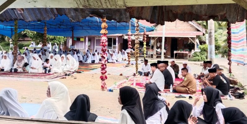Jemaah pengajian yang datang dari berbagai penjuru desa di Kecamatan Ulu Sosa tumpah ruah memadati lokasi untuk mendengarkan tausiah yang disampaikan oleh Ustadz Ebin Soleh Hasibuan M.Pd.