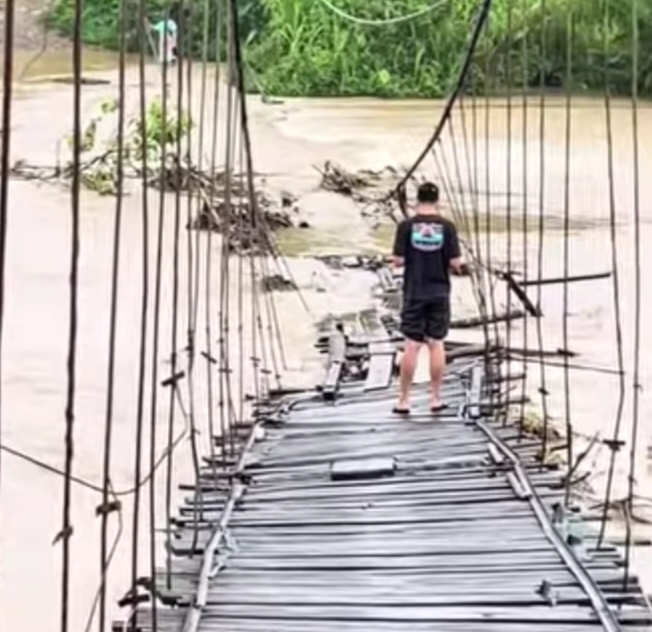 “Jembatan ini sudah rusak sejak dua tahun lalu dan belum pernah diperbaiki. Kami khawatir setiap kali melintas, apalagi kalau air sungai sedang besar,” ujar narasumber, Fuad Hasan, Kamis (23/4/26)