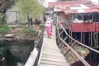 Foto: Anak-anak sekolah berjalan di jembatan miring di Gang Sungai, Kelurahan Bukit Datuk, Kecamatan Dumai Selatan, Kota Dumai. (dok. Istimewa) DUMAI – Langkah kaki…