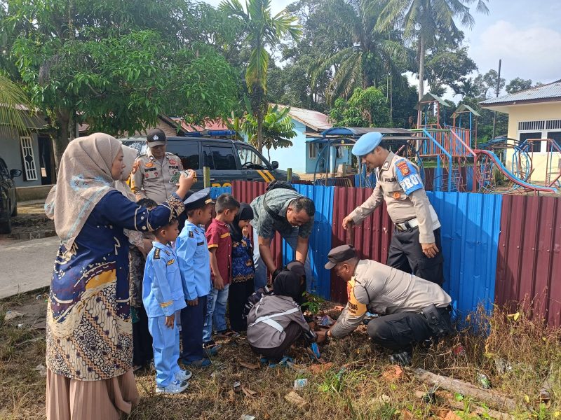 DUMAI – Polsek Medang Kampai melaksanakan kegiatan penanaman pohon di PAUD Baitul Ummi I Pelintung, Kecamatan Medang Kampai, Kota Dumai, pada Rabu, 19 November 2025, pukul 10.00 WIB.