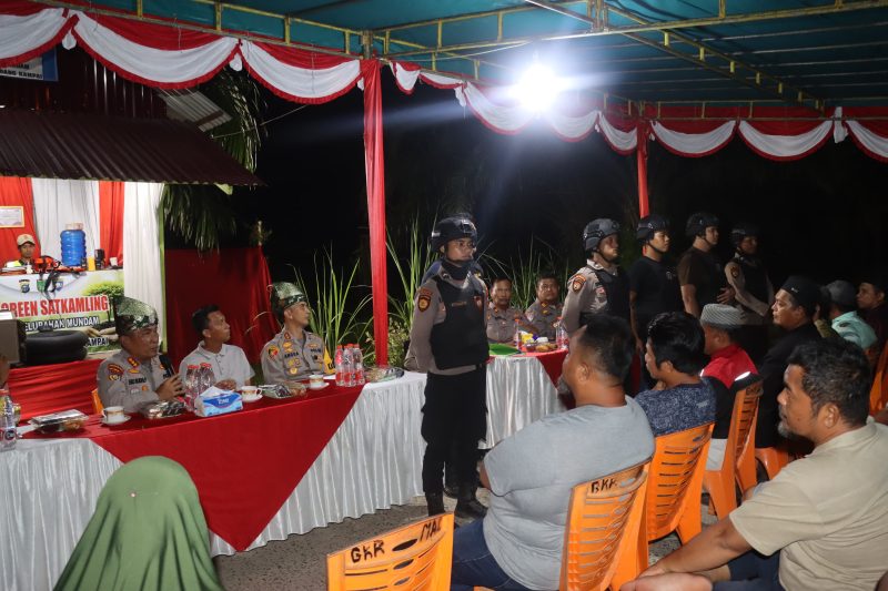 Setelah menyelesaikan kegiatan di Ratu Sima sekitar pukul 22.05 WIB, rombongan melanjutkan ke Pos Satkamling RT 06 Kelurahan Mundam, Kecamatan Medang Kampai, tiba sekitar pukul 22.30 WIB. Disambut oleh Lurah Mundam Adi Prayitno, S.Pd., Bhabinkamtibmas, ketua RT 06 Nasrul, dan warga, Kapolres Dumai membuka acara dengan menekankan pentingnya silaturahmi untuk mempererat hubungan Polri dan masyarakat.