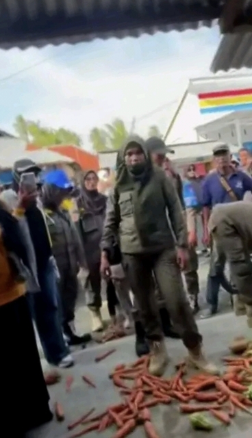 “Kalau menjual bawang, rica, tomat, seharusnya bukan di sini tempatnya. Barang tersebut harus dijual di dalam pasar yang sudah disediakan!” ujar salah satu oknum anggota Satpol PP di tengah keriuhan.