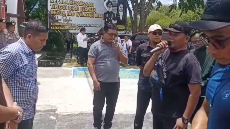 Aksi berlangsung dengan tertib di halaman kantor Kejaksaan Negeri Dumai, di mana perwakilan massa menyampaikan tuntutan secara langsung kepada pihak kejaksaan.