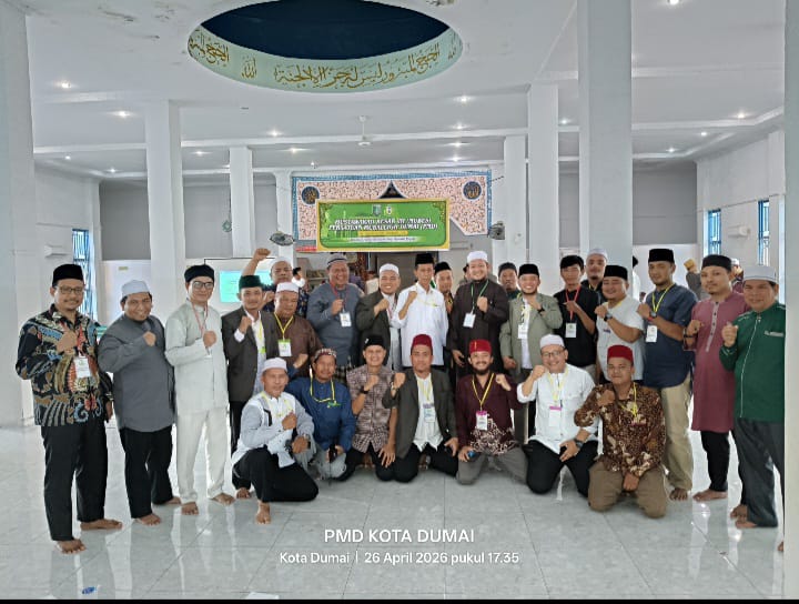 DUMAI — Musyawarah Besar (MUBES) Persatuan Muballigh Dumai (PMD) berlangsung dengan penuh khidmat dan semangat kebersamaan. Dalam forum tertinggi organisasi tersebut, H. Panaekan Hasibuan. Lc resmi ditetapkan sebagai Ketua PMD untuk periode 2026–2029 yang bertempat di Sekretariat PMD Kota Dumai Mesjid Hasan Basri Minggu (26/04/2026).