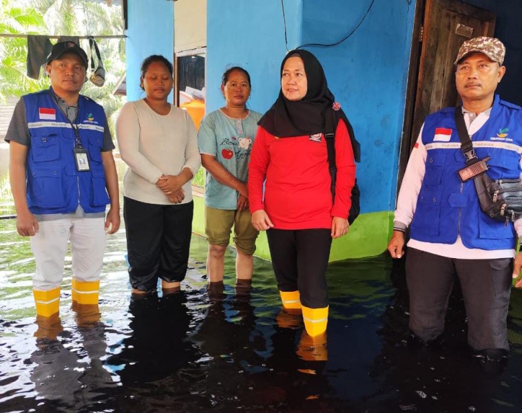DUMAI – Kepala Dinas Sosial dan Pemberdayaan Masyarakat drg. Hermiyati , Turun langsung melihat kondisi Masyarakat yang terdampak banjir yang sudah menggenangi sebagian pemukiman warga dalam beberapa hari ini, 18 Desember 2025.
