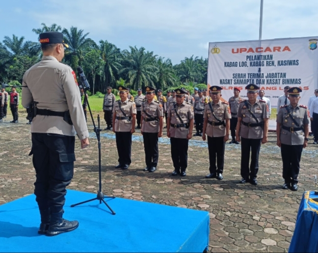 PADANG LAWAS – Kapolres Padang Lawas AKBP Dodik Yuliyanto, SIK memimpin Upacara Pelantikan Kabag Log, Kabag Ren, Kasiwas dan Serah terima Jabatan kasat Samapta dan Kasat Binmas Polres Palas, yang berlangsung di halaman Mako Polres Padang Lawas, Senin (20/04/2026).