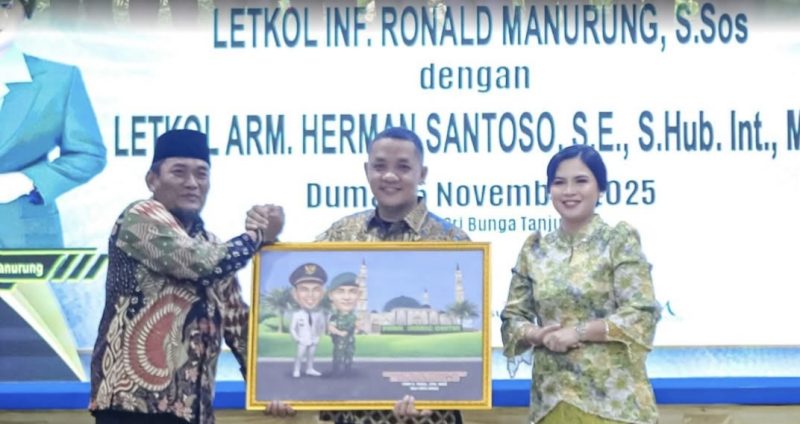 Acara tersebut merupakan momen peralihan jabatan dari Letkol Inf Ronald Manurung, S.Sos kepada Letkol Arm Herman Santoso, SE., S.Hub.Int., M.H.I, yang kini resmi menjabat sebagai Komandan Kodim 0320/Dumai.