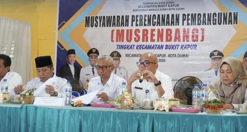 DUMAI – Kepala Dinas Pekerjaan Umum Kota Dumai Riau Satrya Alamsyah, S.T., M.T., menjadi Nara Sumber pada kegiatan Musrenbang Kecamatan Bukit Kapur Tahun Anggaran 2027.