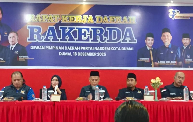DUMAI — Dewan Pimpinan Daerah (DPD) Partai Nasional Demokrat (NasDem) Kota Dumai menggelar Rapat Kerja Daerah (Rakerda) di Hotel Superstar Dumai, Kamis (18/12/2025).