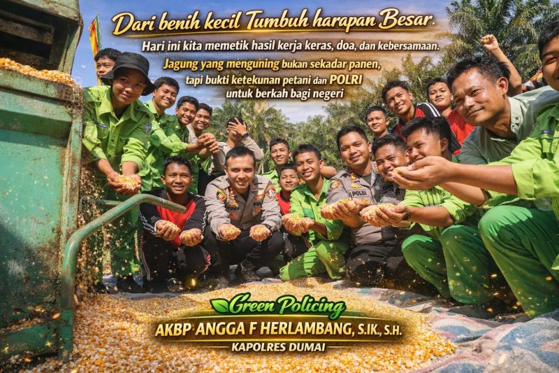 DUMAI – Dalam rangka mendukung Program Nasional Ketahanan Pangan Kwartal I Tahun 2026, Polres Dumai melaksanakan Panen Raya Jagung Pipil di lahan perorangan milik Bapak Rudiyanto seluas ± 1 hektar yang berlokasi di Kelurahan Lubuk Gaung, Kecamatan Sungai Sembilan, Kota Dumai, Selasa (27/1/2026).