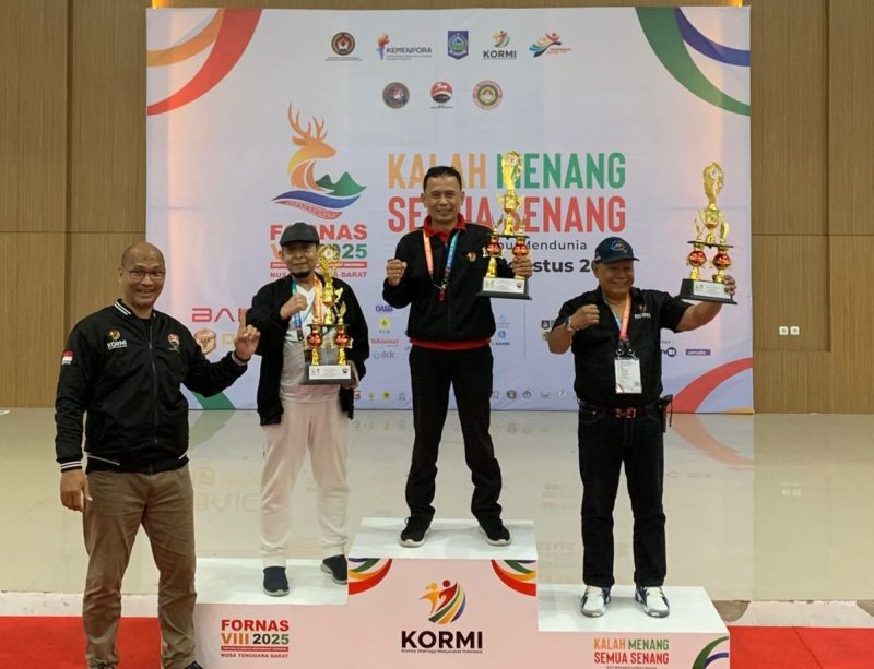 Keterangan Fhoto : Insert : Penyerahan Piala Juara Umum Fornas VIII NTB 2025 Jenor Kempo, Kontingen Jabar sebagai Juara Umum 1, Kontingen Jatim sebagai Juara Umum 2 dan Kontingen Sumbar sebagai Juara Umum 3.