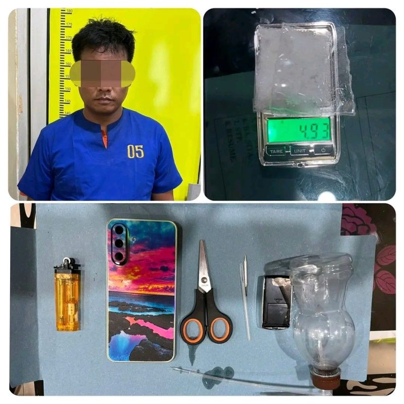 Dari hasil pengamanan tersebut, polisi menyita barang bukti berupa narkotika jenis sabu dengan berat 4,93 gram. Selain itu, turut diamankan satu unit timbangan digital, satu kotak rokok kaleng merek Dji Sam Soe warna hitam, serta alat penghisap bong, gunting dan satu unit handphone android.
