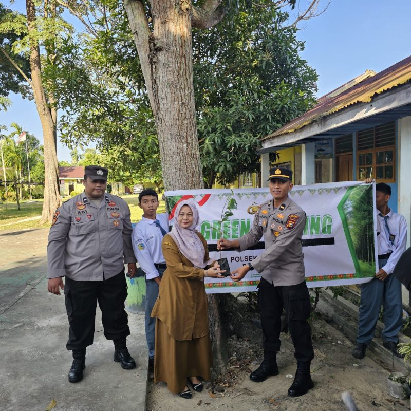 DUMAI – Dalam rangka mendukung program Green Policing Polda Riau sebagai wujud kepedulian terhadap pelestarian lingkungan hidup, Polsek Dumai Timur melaksanakan kegiatan penyerahan dan penanaman bibit pohon di lingkungan SMK Perminyakan Kota Dumai, Kecamatan Dumai Timur, Kota Dumai, pada Jumat (26/1/2026) sekira pukul 09.00 WIB.