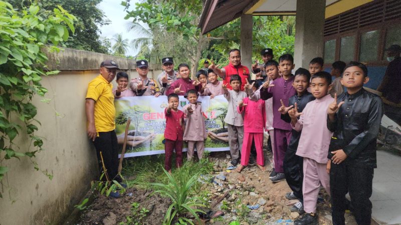DUMAI – Polres Dumai melalui Polsek Sungai Sembilan melaksanakan kegiatan edukasi dan penanaman pohon dalam rangka program Green Policing di Sekolah Dasar (SD) Negeri 003 Kelurahan Bangsal Aceh, Kecamatan Sungai Sembilan, Kota Dumai, pada hari Jumat, 24 Oktober 2025.