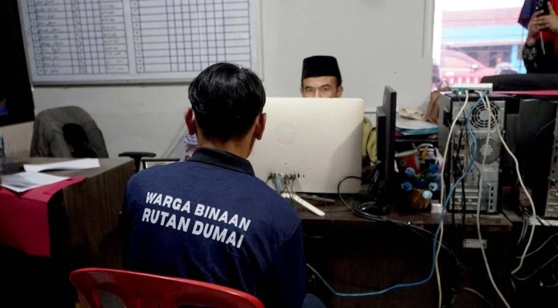DUMAI – Rumah Tahanan Negara (Rutan) Kelas IIB Dumai menjalin kerja sama dengan Dinas Kependudukan dan Pencatatan Sipil (Disdukcapil) Kota Dumai dalam pelaksanaan kegiatan pemadanan data serta perekaman Kartu Tanda Penduduk (KTP) bagi warga binaan.
