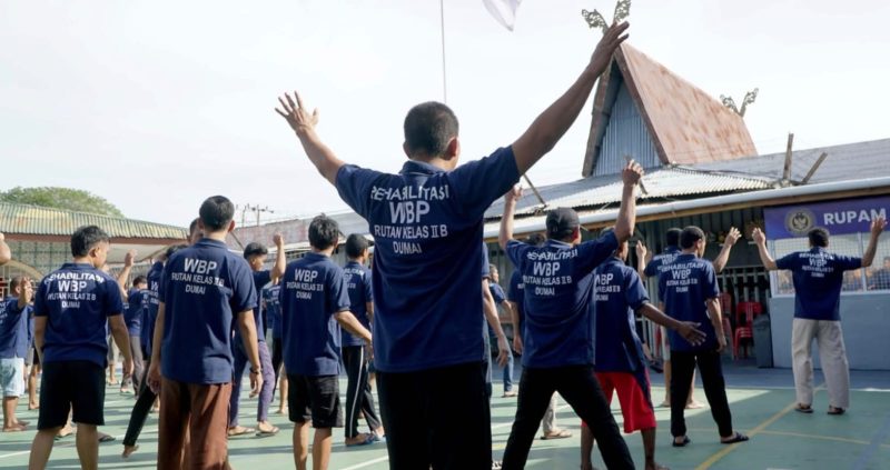 Kepala Rutan Dumai, Enang Iskandi, menyampaikan bahwa agenda senam pagi ini merupakan upaya rutan dalam menjaga kebugaran serta memperkuat hubungan sosial yang positif antara petugas dan warga binaan.