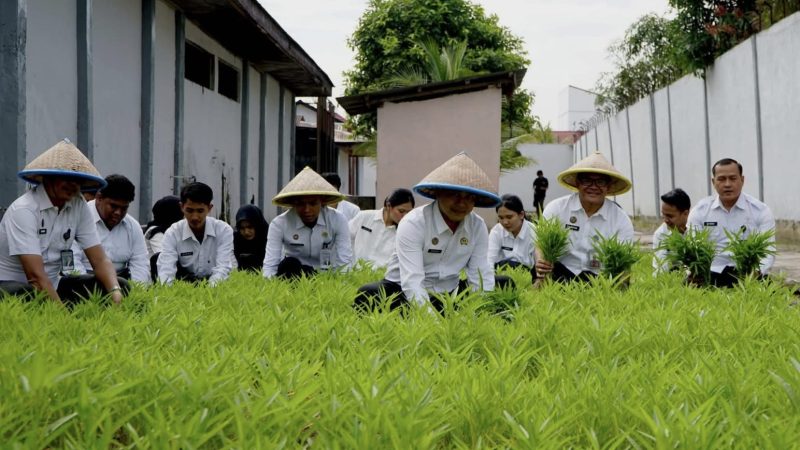 Rutan Dumai Panen Sayur Kangkung dari Program Pembinaan Warga Binaan
