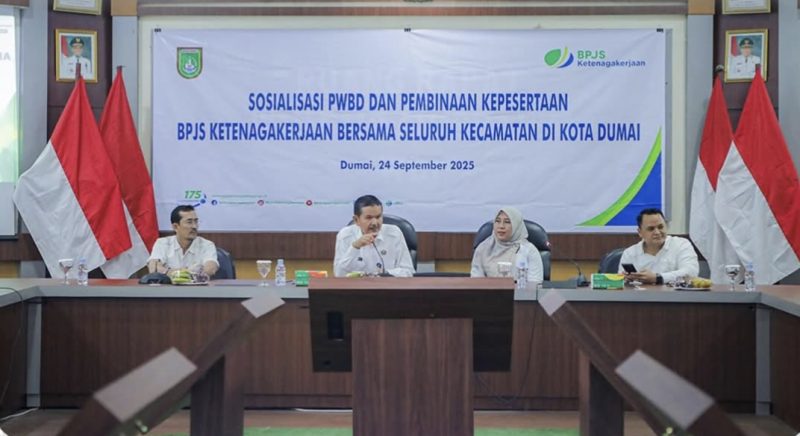 DUMAI – Sekda Kota Dumai H. Indra Gunawan, S.IP, M.Si menghadiri sekaligus membuka Sosialisasi Perusahaan Wajib Belum Daftar (PWBD) dan Pembinaan Kepesertaan BPJS Ketenagakerjaan yang bertempat di Ruang Rapat Wan Dahlan Ibrahim, Rabu (24/09/2025).