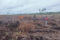 BENGKALIS — Babinsa Koramil 04/Rupat, praka Tarigan, bersama masyarakat melaksanakan patroli kebakaran hutan dan lahan (Karhutla) di wilayah lahan rawan yang berada di Desa…