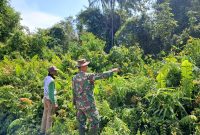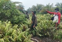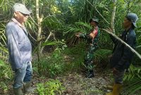 BENGKALIS — Babinsa Koramil 04/Rupat, Pelda S. Sinaga, bersama masyarakat melaksanakan patroli kebakaran hutan dan lahan (Karhutla) di wilayah rawan kebakaran di Desa Sri…